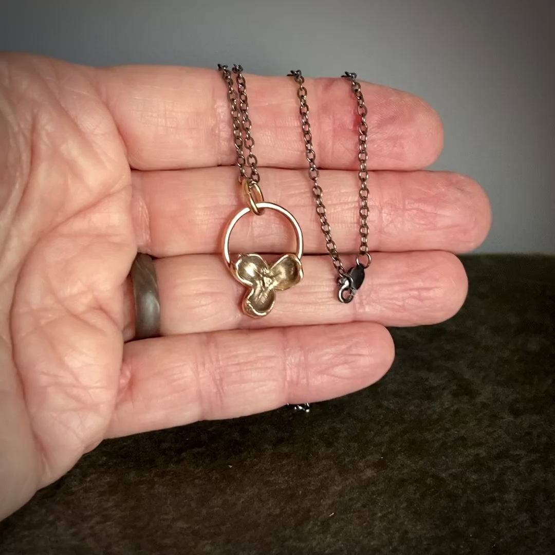 I've taken a bittersweet pod that I molded and carved and had it cast in yellow bronze. As bronze naturally oxidizes, it leaves a beautiful patina. This necklace will be your new favorite fall piece.