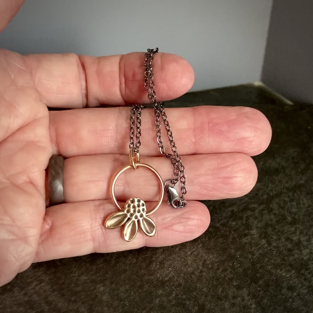 Bronze Coneflower Hoop Necklace